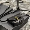 Small satchel bag with flap featuring a metal ysl knocker and adjustable shoulder strap